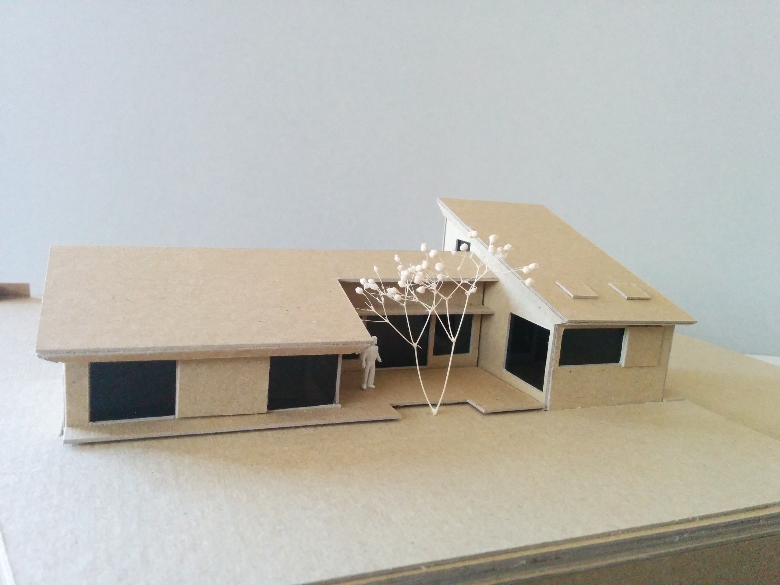 平屋希望との事で日常生活空間と休息空間を分けデッキでつなぐプラントした。